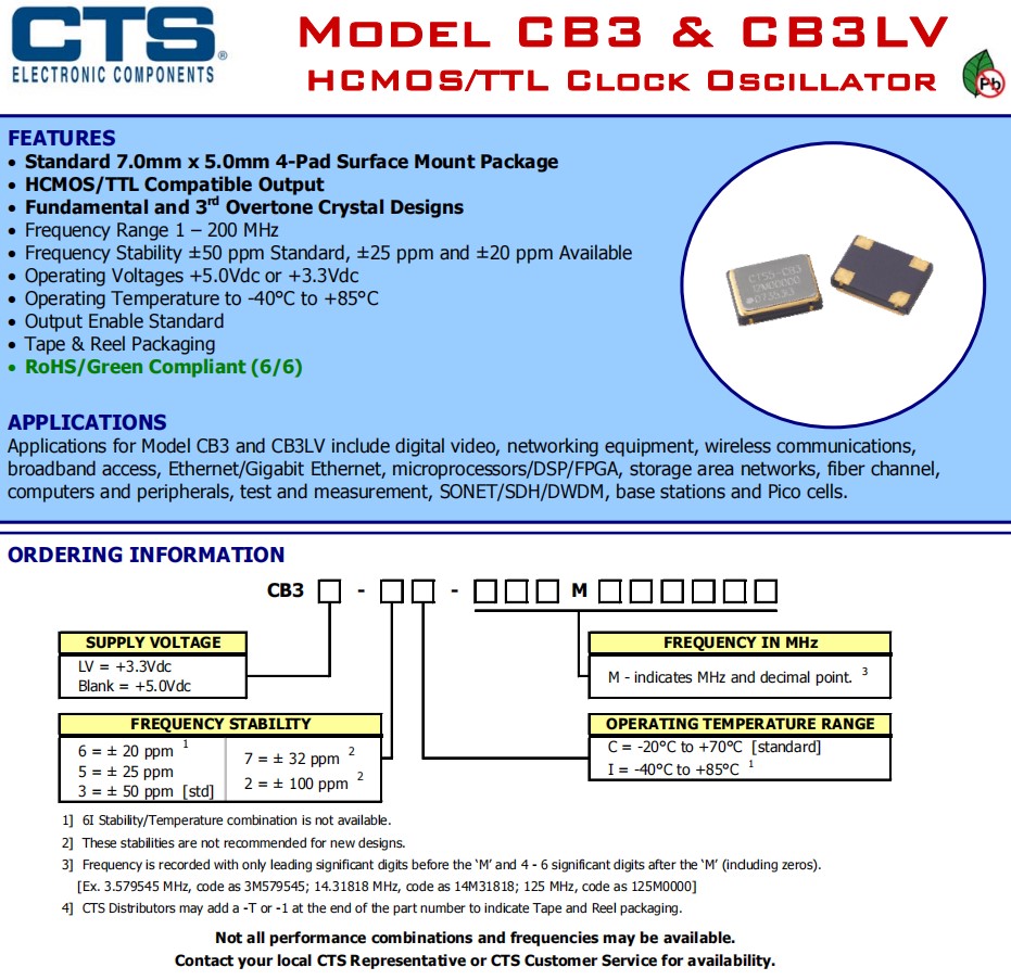 | CB3LV-3C-40M0000 | CTS晶振 | CB3LV | 40MHz | ±50ppm | 4-SMD, No Lead |